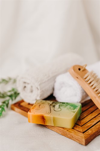 Handgjord tvål med fräsch doft. Tvålen lämnar huden len, återfuktad och väldoftande.